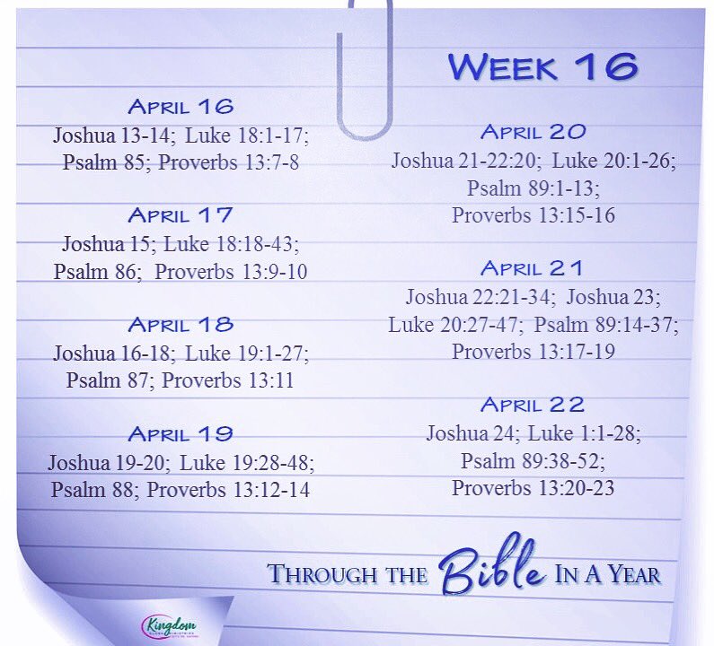 Today S Reading From The One Year Bible April 21 Joshua 22 21 23 16 Luke 20 27 47 Psalm 89 14 37 Proverbs 13 17 19 New Life Community Church